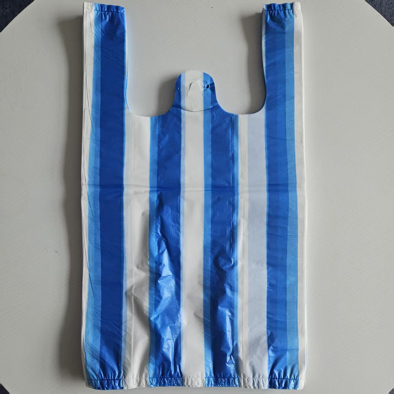 HDPE批發價高強度一次性PE條紋彩色塑膠T卹袋