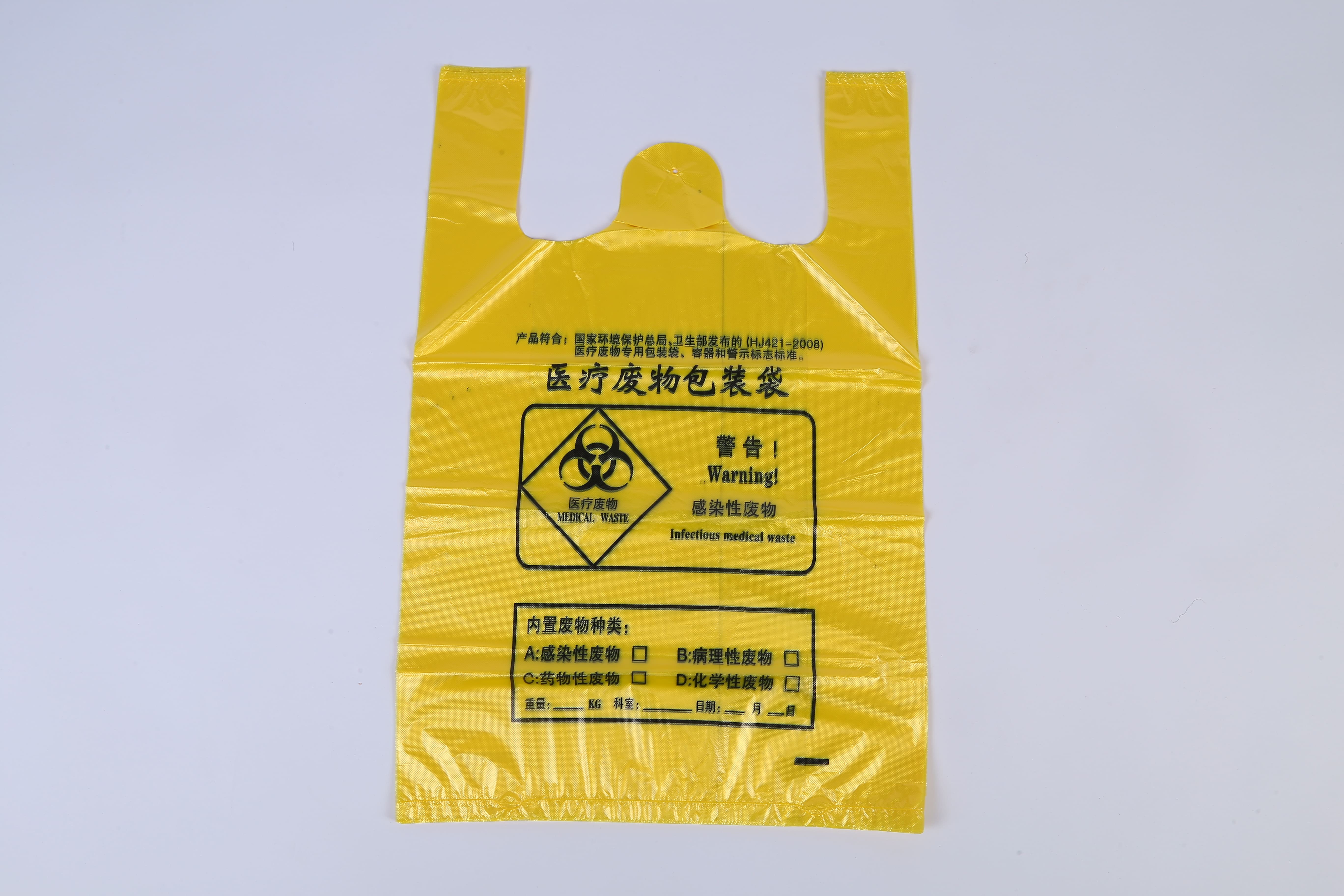 防穿刺功能至關重要,它可以防止針頭和手術刀等尖銳物品刺穿袋子,從而降低醫護人員和廢物管理人員接觸傳染性物質的風險。我們這款醫療廢棄物背心袋的一大亮點是其符合人體工學且實用的設計。背心式設計不僅穿著方便,而且提高了靈活性,使需要在移動中處理廢物的醫護人員能夠有效率地完成工作。這種以使用者為中心的設計減少了廢棄物處理所需的時間和精力,使醫護人員能夠專注於最重要的事:病患照護。此外,這款醫療廢棄物背心袋在設計時也充分考慮了安全性。每個袋子都配備了符合監管指南的清晰標籤系統,確保能夠輕鬆識別危險廢物。這項特性有助於安全操作,最大限度地降低事故風險,使其成為任何醫療機構的理想選擇。獨特的顏色編碼有助於快速分類和處置,從而提高整體營運效率。此外,我們的高強度防穿刺醫療廢棄物背心袋提供多種尺寸,以滿足從小型診所到大型醫院等不同醫療機構的需求。這種多功能性不僅使其適用於不同類型的醫療廢棄物,還能滿足不同的儲存要求,提供量身訂製的解決方案。永續性是我們產品系列的另一個主要基石。